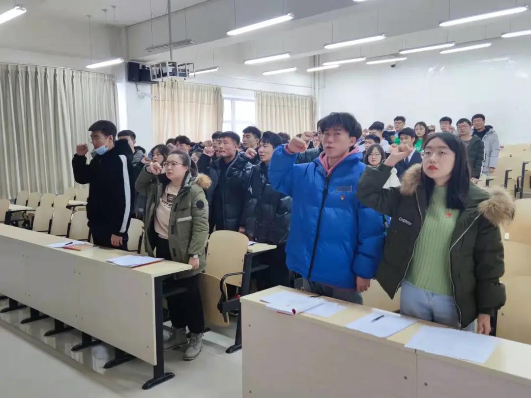 2021年12月24日12:30,yl8858永利集团学生第二党支部于逸夫楼G304组织开展了预备党员转正大会,参加本次会议的有支部书记杨明明老师,支部负责老师王潇潇老师以及全体党员,本次会议的主持人为党员荣颖蕤同志。