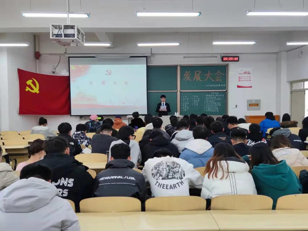 2021年12月9日12:30,yl8858永利集团学生第二党支部在逸夫楼G103召开了发展大会,参加本次会议的有支部书记杨明明老师、支部负责老师王潇潇老师、支部全体党员和部分积极分子。本次会议由党员荣颖蕤同志主持。