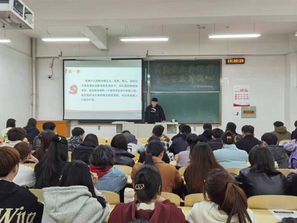 接着,进入积极分子发言环节,积极分子们上台发言以自身经历向大家讲述了在生活中要谨防电信诈骗,陌生人发送的好友申请不要通过,将自身安全放在首位。