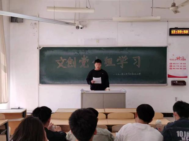 文创党小组于二教B107开展本次学习,本次学习的主持人为党员张淼琪同志。首先,由党员张淼琪同志简要介绍本次学习内容。随后,进行十分钟的自主学习并由积极分子分享自己的理解与感悟。积极分子发言结束后,文创党小组的曹辉同学进行了以“青年传递中国信心”为主题的时政宣讲:我们要坚定历史自信,增强历史主动,不断为强国建设、民族复兴伟业添砖加瓦!最后,党员张淼琪同志对本次学习进行总结,我们要认真学习贯彻全国两会精神,以人民为中心,将为人民服务放在首位,落实五大政策,为全面建设社会主义现代化国家添一份力。