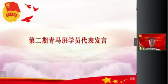 第一期青马班优秀学员代表郝嘉琪进行发言,充分表达了在培训班中的收获和成长,通过理论学习和实践锻炼,更加坚定了对马克思主义的信仰。