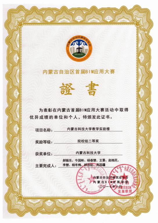 内蒙古首届BIM应用大赛一等奖