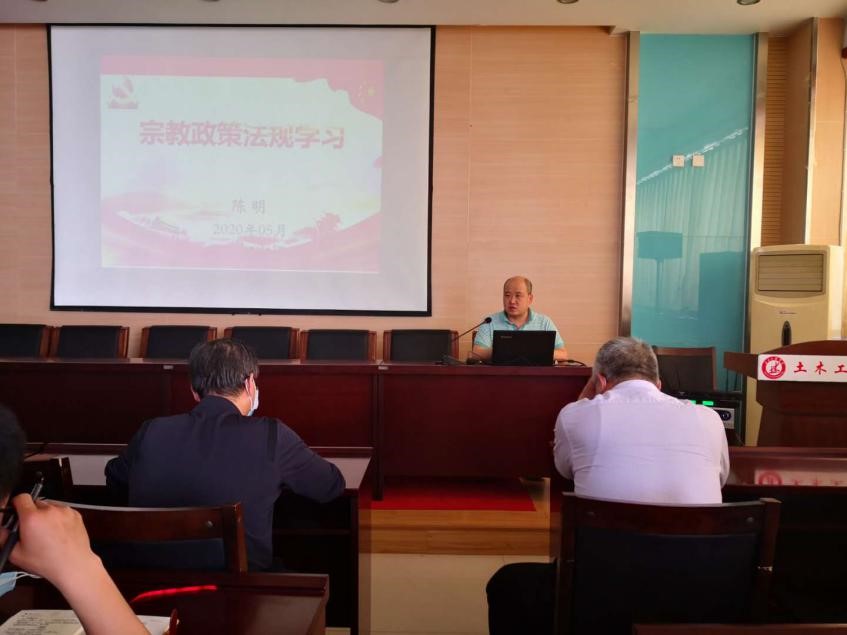 5月29日下午,yl8858永利集团在逸夫楼B404组织开展全院教职工政治理论学习,党总支书记陈明作了题为“宗教政策法规学习”的专题报告。
