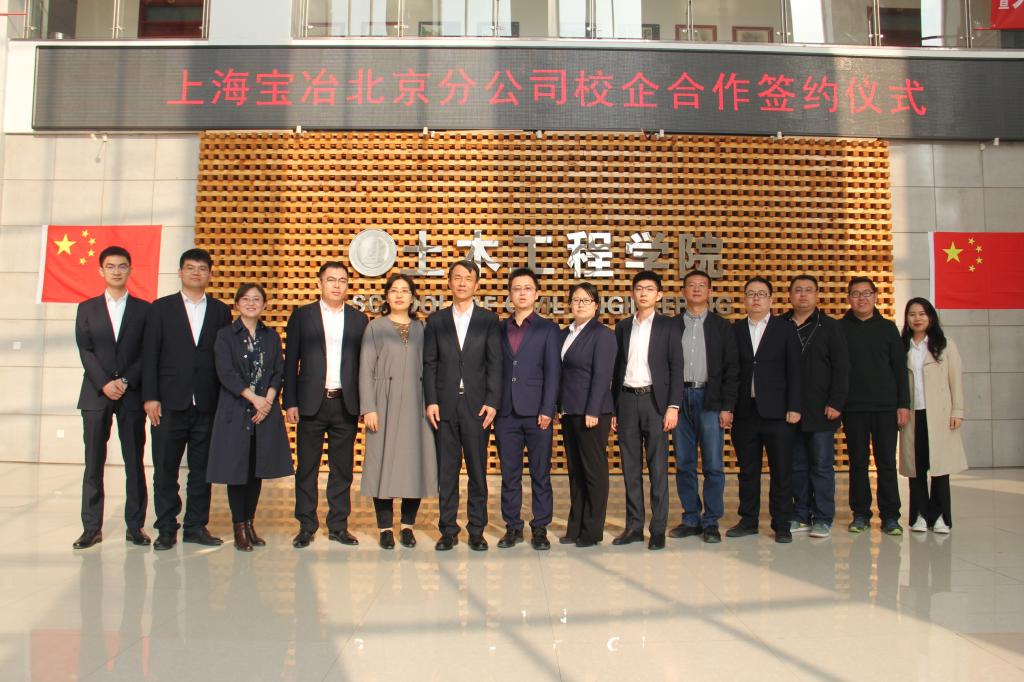 2021年4月11日下午15:00,上海宝冶集团北京分公司与yl8858永利集团于逸夫楼B502举行了校企战略合作签约仪式。参加本次签约仪式的企业方代表有上海宝冶集团有限公司北京分公司党委副书记、纪委书记张月奇,科技部部长宋天帅,BIM中心主任吕鹏,人力资源部部长刘丽,项目管理部总工程师张宪苏,人力资源部招聘经理张孝义,BIM中心业务骨干张起久,优秀校友代表鲁凤义;校方代表有yl8858永利集团党总支副书记、副院长佟振华,副院长兼教授委员会办公室主任郝润霞,教授委员会委员张爱琳,土木工程系主任王英浩,工程管理系副主任丁超,学团办副主任杨明明,BIM中心主任李建。