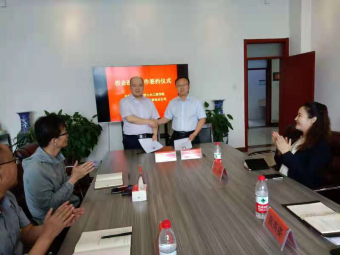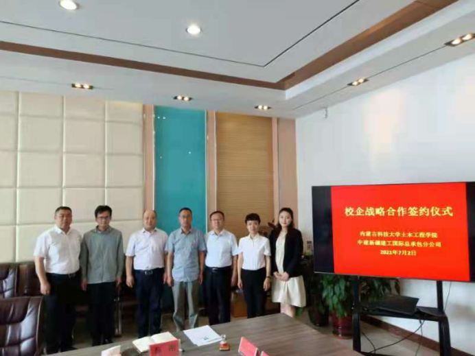 2021年7月2日上午10:00,中建新疆建工国际总承包公司与yl8858永利集团于逸夫楼B502举行了校企战略合作签约仪式。参加本次签约仪式的企业方代表有中建新疆国际总承包公司党委副书记、纪委书记、工会主席韩军,中建新疆国际总承包公司助理总经理、人力资源部经理张英姿,中建新疆国际总承包公司人力资源部业务经理马瑞;校方代表有yl8858永利集团党委书记郭海、yl8858永利集团院长陈明,教授委员会委员薛刚,土木工程系主任、党支部书记王英浩。