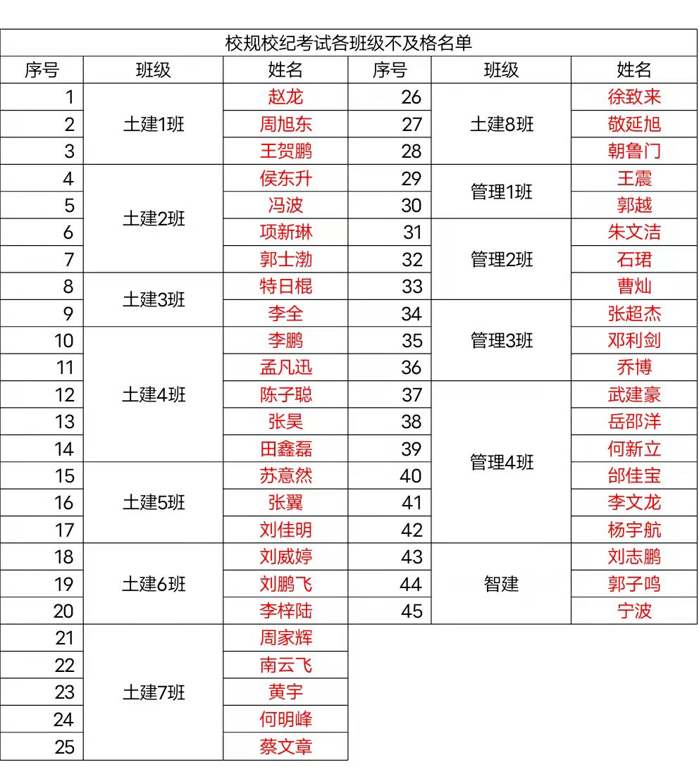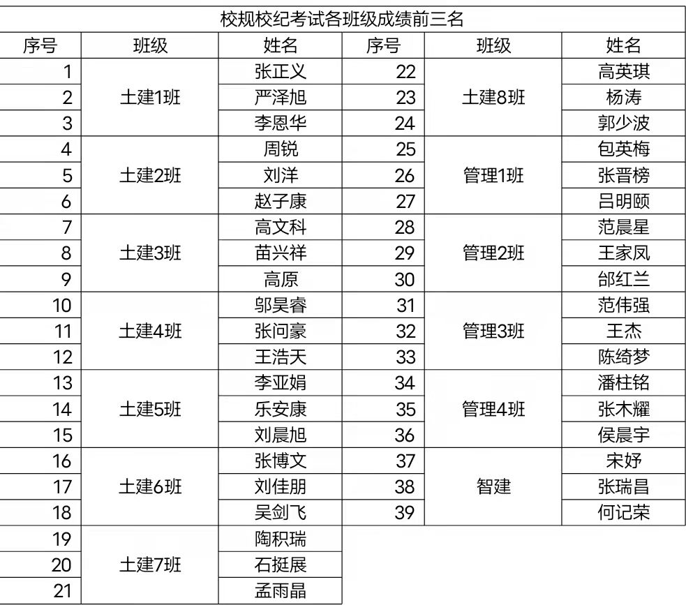 校规校纪考试是我院建设优良学风的重要举措。本次考试以《永利官网学生管理条例》为基础,着重考察学生对校训释义、安全管理规定、违纪惩戒制度、学籍管理制度、请销假制度的理解情况。考试以闭卷形式进行,试题形式主要为单选题、多选题、填空题、简答题、主观题五种类型。此次考试要求考生诚信应考,严格遵守考场纪律。现将本次考试结果公布如下。