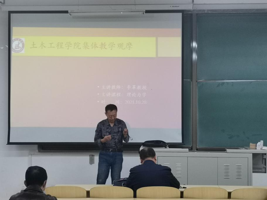 2021年10月28日下午14:30,yl8858永利集团在逸夫楼G104组织全体教师进行教学观摩,观摩内容为学院优秀教师代表李革教授的理论力学课。