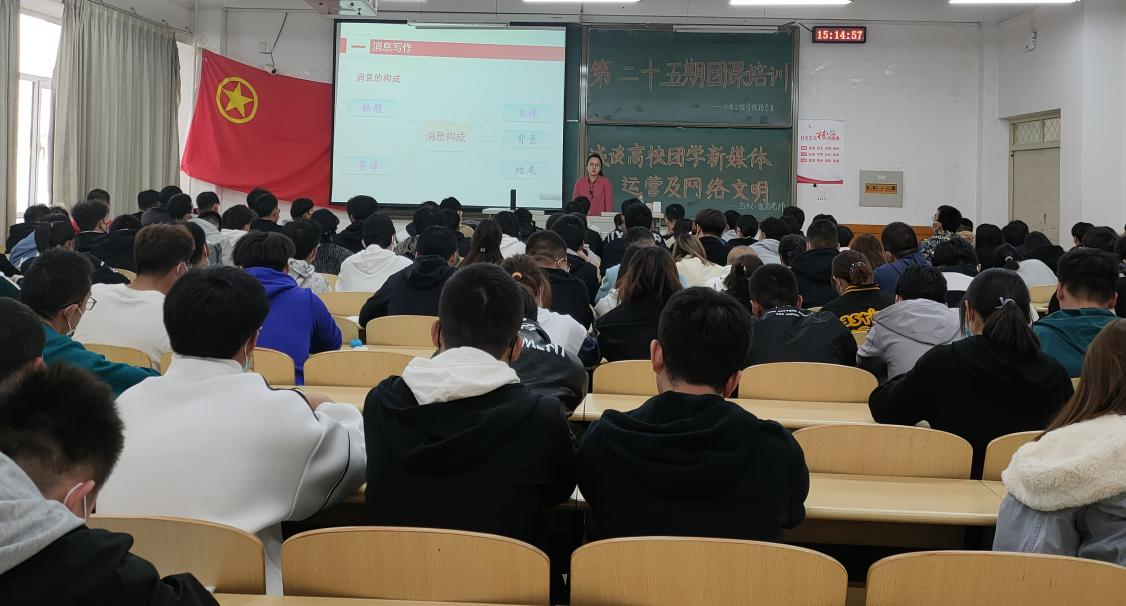 2021年10月24日下午14:30分,团课第十讲由崔岩老师为我们讲解“浅谈高校团学新媒体运营及网络文明”。崔老师通过 “网络热词排行榜”广泛调动了同学们的积极性,课堂气氛非常活跃。崔老师将“传统方式讲党史”与“新媒体形势下讲党史”做了对比,通过比较的方法,帮助同学们认识到新媒体的优势,同时强调了宣传工作对共青团工作的重要性。崔老师提出,新媒体的广泛运用给当前团学工作带来了新机遇和新挑战,希望青年学生要正确认识新媒体,把新媒体优势运用到学习工作中,同时做一名合格的网络文明人。