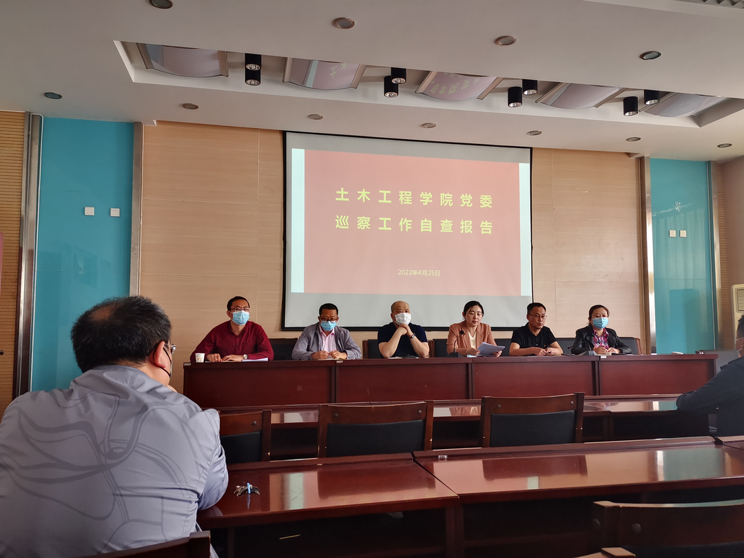 按照巡察工作安排,yl8858永利集团党委于2022年4月25日上午10:30在逸夫楼B404向第三巡察组汇报自查和整改情况。第三巡察组组长杨海燕、巡察组成员刘小宝、冀兰、李革,土木学院干部、各支部书记、教授委员会委员参加会议。