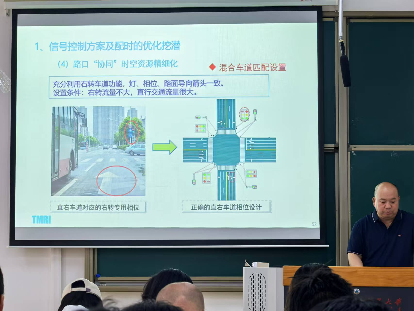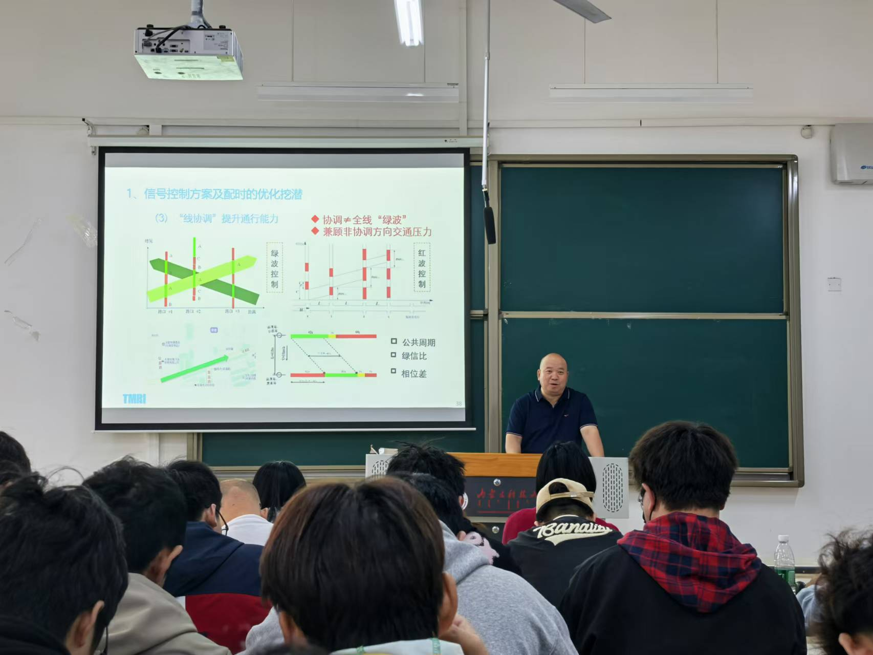 课上两位专家结合包头市交通流实际情况,首先详细讲解了包头市周日、双休日、节假日和特殊天气下的交通流变化规律及其控制策略,随后根据交通流情况就交叉口单点信号控制和干道绿波交通控制进行了详细讲解。课程讲解结合包头市实际案例,深入浅出,生动有趣,学生受益颇多。本次课程的开展,有效提升了学生学习效果,拓展了课程授课方式,后续课程将持续邀请行业专家来校开展授课活动,提升课程授课效果和我院校企共建课建设水平,推动实现教育与产业链、教育链、人才链的有机融合。