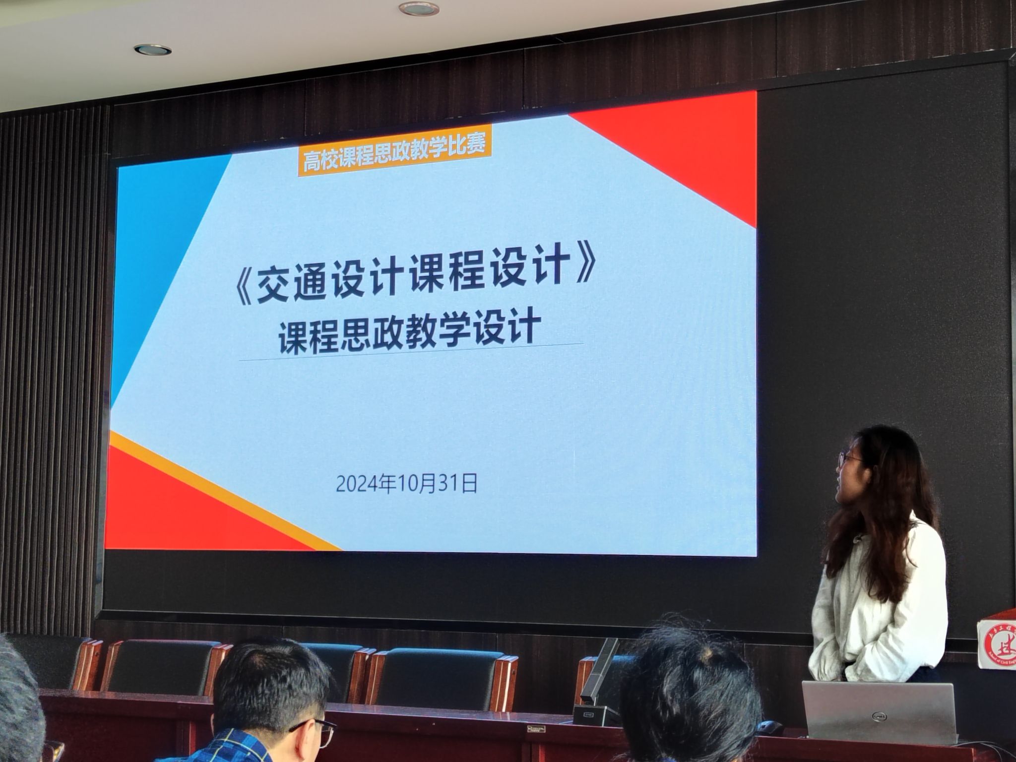 此次观摩的课程是《交通设计课程设计》,由我校课程思政实践组比赛中荣获一等奖的尹娟老师讲授。在说课环节,详细阐述了课程的教学目标、教学设计以及思政元素的融入点和融入方式。从创新意识、家国情怀、服务社会等多个维度,将思政元素巧妙地渗透到课程内容中,让实践课变得更加生动、富有内涵。在讲课环节,将预调研阶段学生共性问题作为切入点,引入往届优秀设计案例,引导学生共同梳理平面交叉口优化改造方法。在案例分析中,强调交通调查的重要性,使学生感同身受,在后续实践环节保持敬业精神,做好严谨的现场调研。观摩最后,现场老师在肯定优点的同时,提出很多好的建议,希望尹娟老师在后续比赛中再创佳绩。