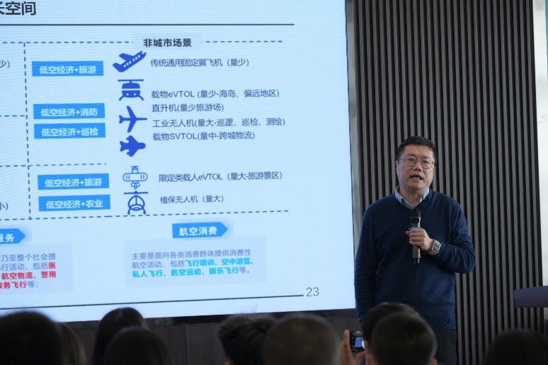 郑州航空工业管理学院郝爱民院长做《低空经济新质生产力发展挑战及实践路径》的报告。郝院长从第十五届中国航展真切感受到低空经济带来的变革浪潮,从低空经济与新质生产力、低空经济全产业链、低空经济现状及发展趋势研判、中国重点区域创新实践及挑战、低空经济发展评价监测指标体系、低空经济与第五消费冲击波和低空经济高质量发展的思考七个方面讲述低空经济的创新发展路径。