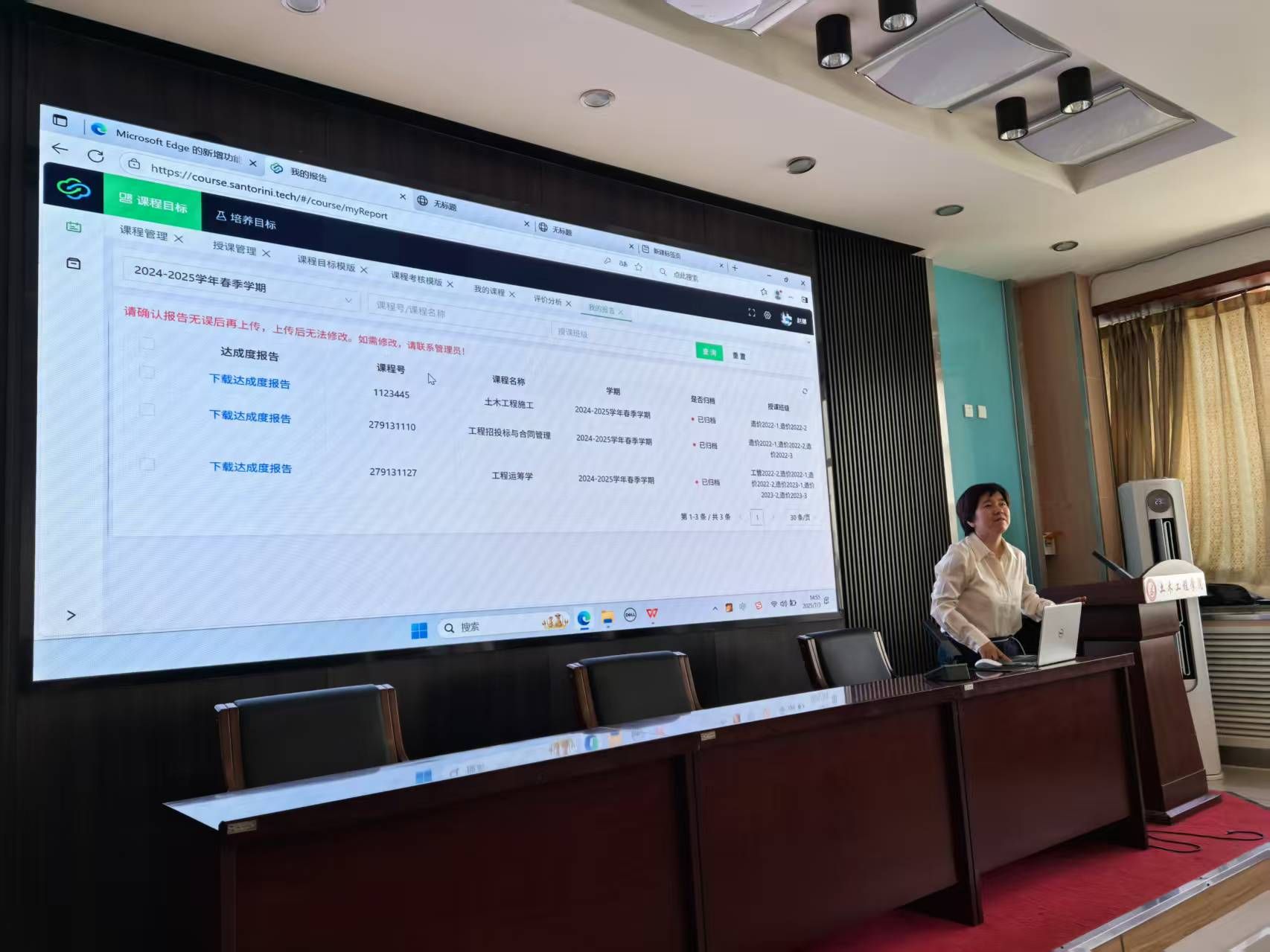 2025年7月3日下午,yl8858永利集团工程管理系系主任赵娜老师为全院教师进行了课程达成度计算的培训。针对前期工程管理评估中的达成度评价系统如何使用,一边演示、一边回答问题。教师们对系统的使用十分感兴趣,纷纷表示在本学期课程达成度报告撰写中使用和提出改进意见。