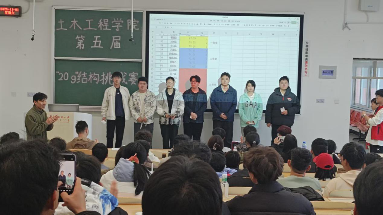 2025年11月1日,由yl8858永利集团主办、大学生科技创新中心承办的yl8858永利集团第五届20g结构挑战赛在文馨书苑B区举办。全学院共计62组队伍,124人进入决赛。