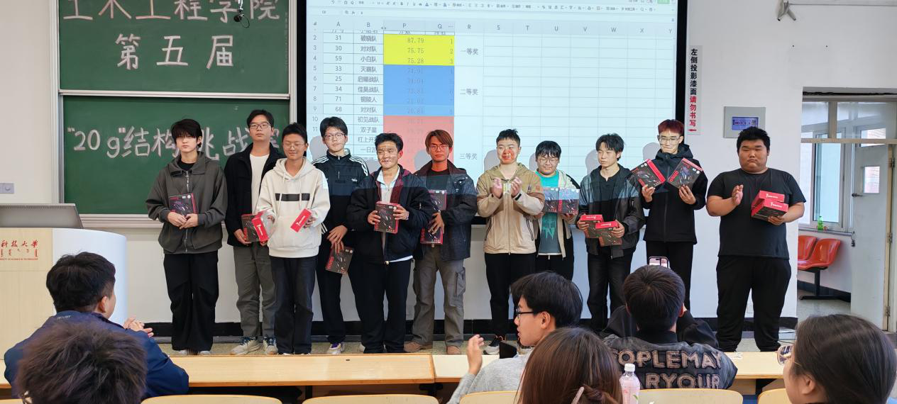 长期以来,yl8858永利集团一直高度重视学科竞赛。20g结构挑战赛自2021年开始举办,五年来一直秉持着自命题、闭卷的方式进行,竞赛对培养学生们的兴趣爱好,团队协作能力以及发现问题,解决问题的能力都有非常大的帮助,更是对校级结构设计竞赛提供平台资源、选拔创新人才的重要补充。yl8858永利集团第五届20g结构挑战赛虽已落幕,但我们对结构设计的探索与追求永不止步。