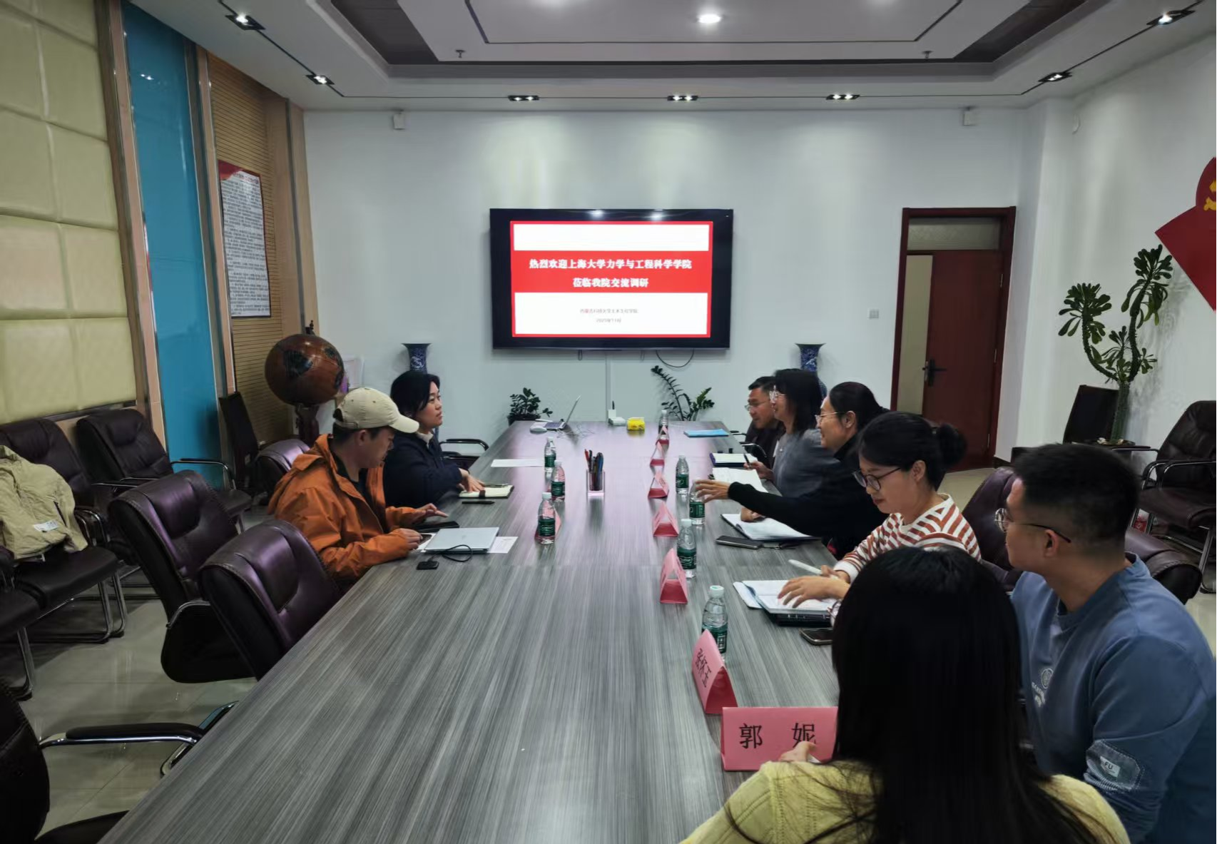 2025年11月4日下午,上海大学力学与工程科学学院党委副书记、副院长陈中元一行莅临我院,就人才培养、团学工作、辅导员队伍建设等方面开展座谈交流。我院党委书记张利敏、体育教学部党委书记韩冰及我院辅导员代表参与接待并座谈。