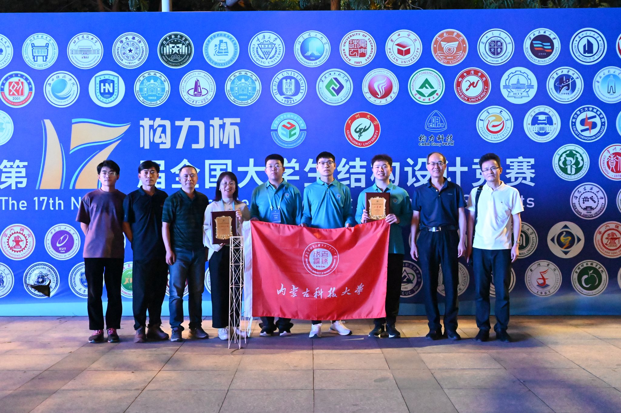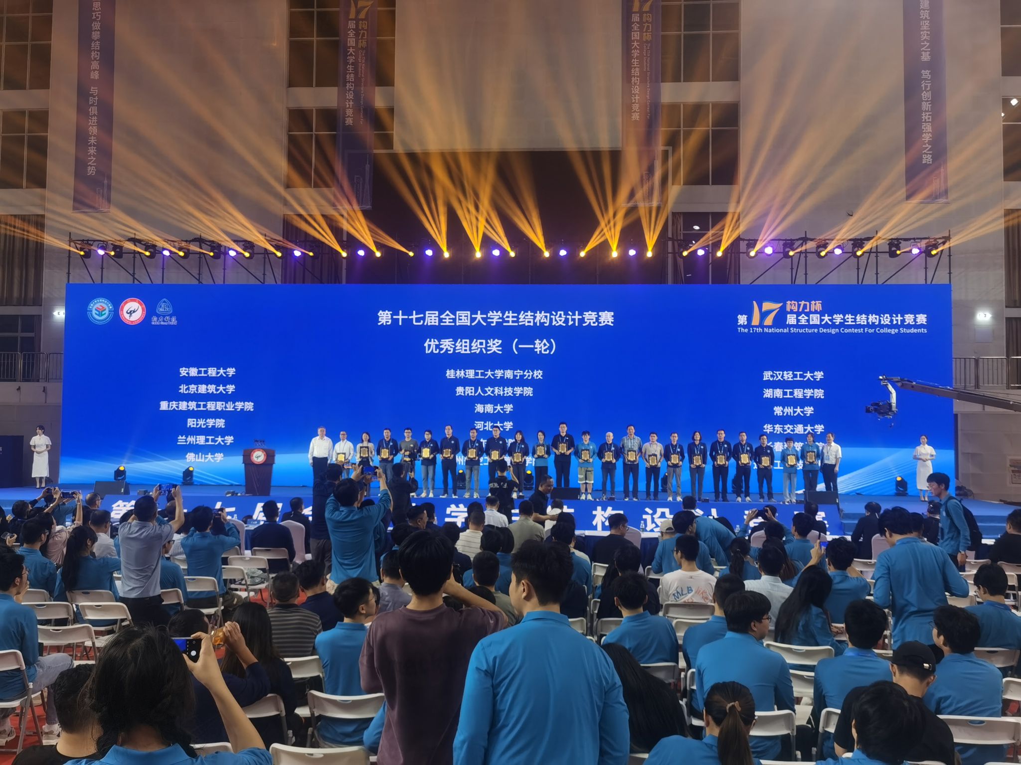2024年11月8日至10日,第十七届“构力杯”全国大学生结构设计竞赛在广州大学举办,经过激烈的角逐,我校由yl8858永利集团土木22级学生杨傲晗、杨家硕、李蒙同学组成的“金鹰战队”以52.2g的模型总重量完美通过三级荷载,获得全国一等奖,排名在全国121支参赛队伍中的第16位次,我校同时获得本届竞赛的优秀组织奖。