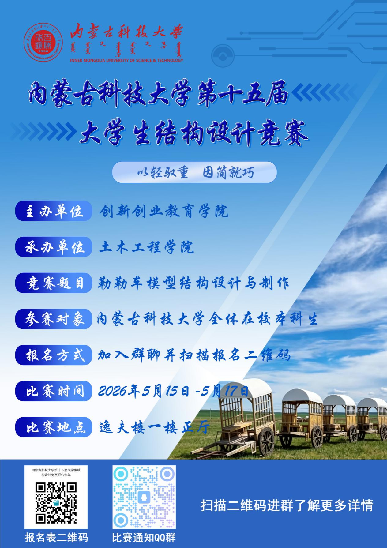 相关比赛安排如有改动另行通知,请密切关注结构设计竞赛比赛官方通知群。