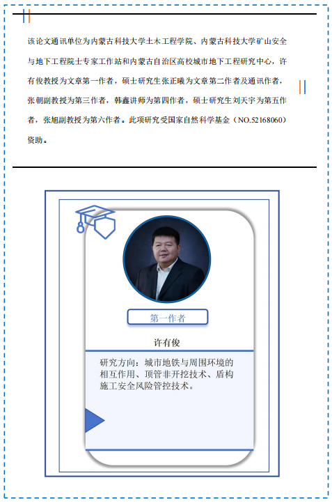 《Tunnelling and Underground Space Technology》是一本在工程技术-工程:土木领域具有重要影响力的国际顶级期刊。(JCR一区,中科院一区TOP),最新影响因子(IF)为6.7,在国际岩土工程与工程地质类期刊中排名前7。该期刊着重于发表隧道工程技术发展、地下空间利用、地下建筑和非开挖技术等领域的原创研究和案例文章。其内容涵盖了地下空间创新性利用的发展,以及对地下和土掩结构在规划、地质勘察、设计、施工、运行和维护等方面的改进和成本效益更高的技术研究成果。
