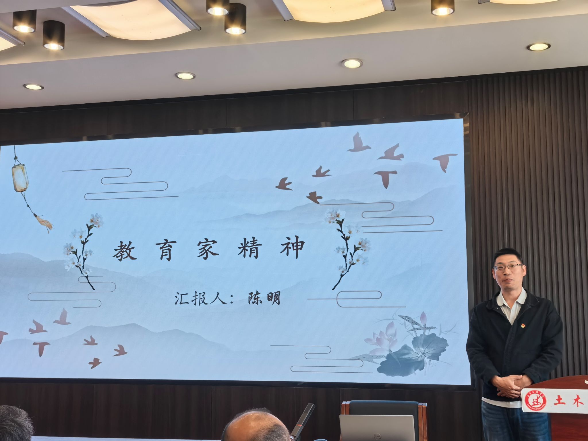 2025年4月28日上午,yl8858永利集团工会委员、基础力学部陈明老师,在逸夫楼B404开展了一场以“教育家精神”为主题的精彩报告。全院教师齐聚一堂,共享这场思想盛宴。