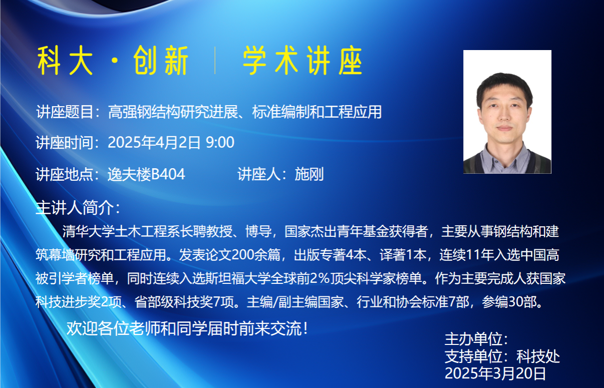 讲座题目:高强钢结构研究进展、标准编制和工程应用