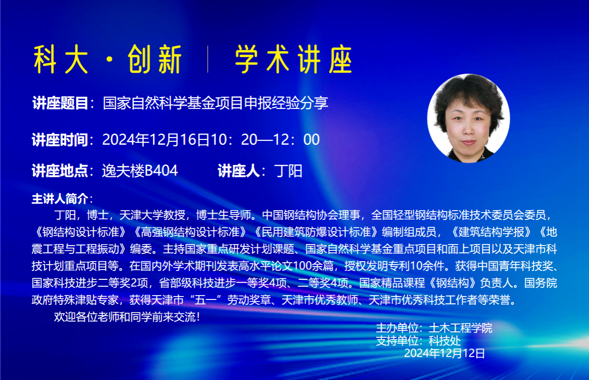 讲座题目:国家自然科学基金项目申报经验分享