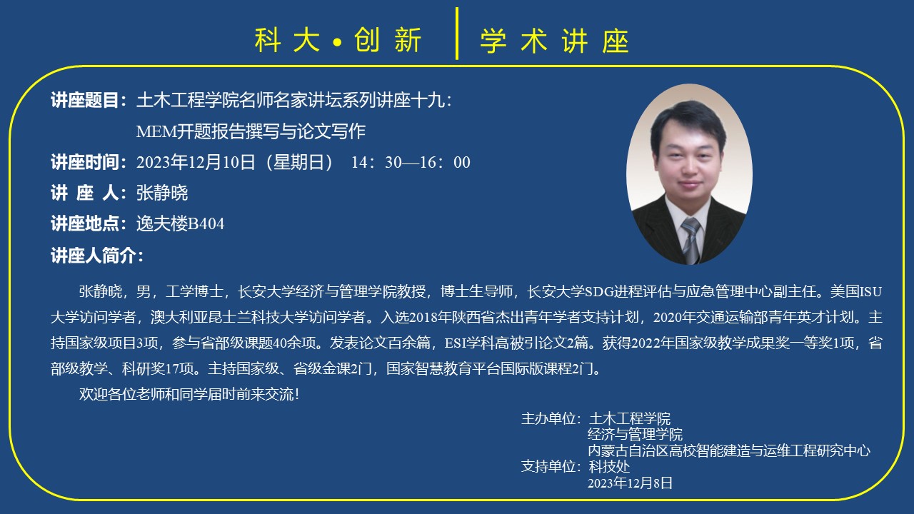 讲座题目:MEM开题报告撰写与论文写作