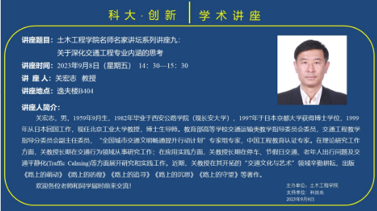 讲座时间:2023年9月8日(星期五)14:30—15:30