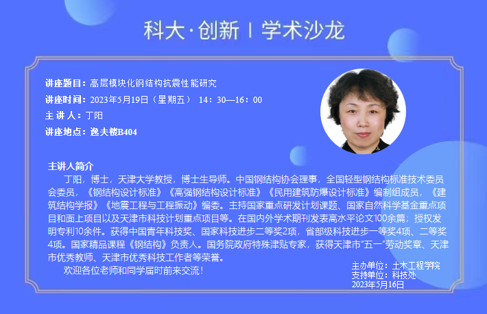 讲座题目:yl8858永利集团名师名家讲坛系列讲座一 ——高层模块化钢结构抗震性能研究