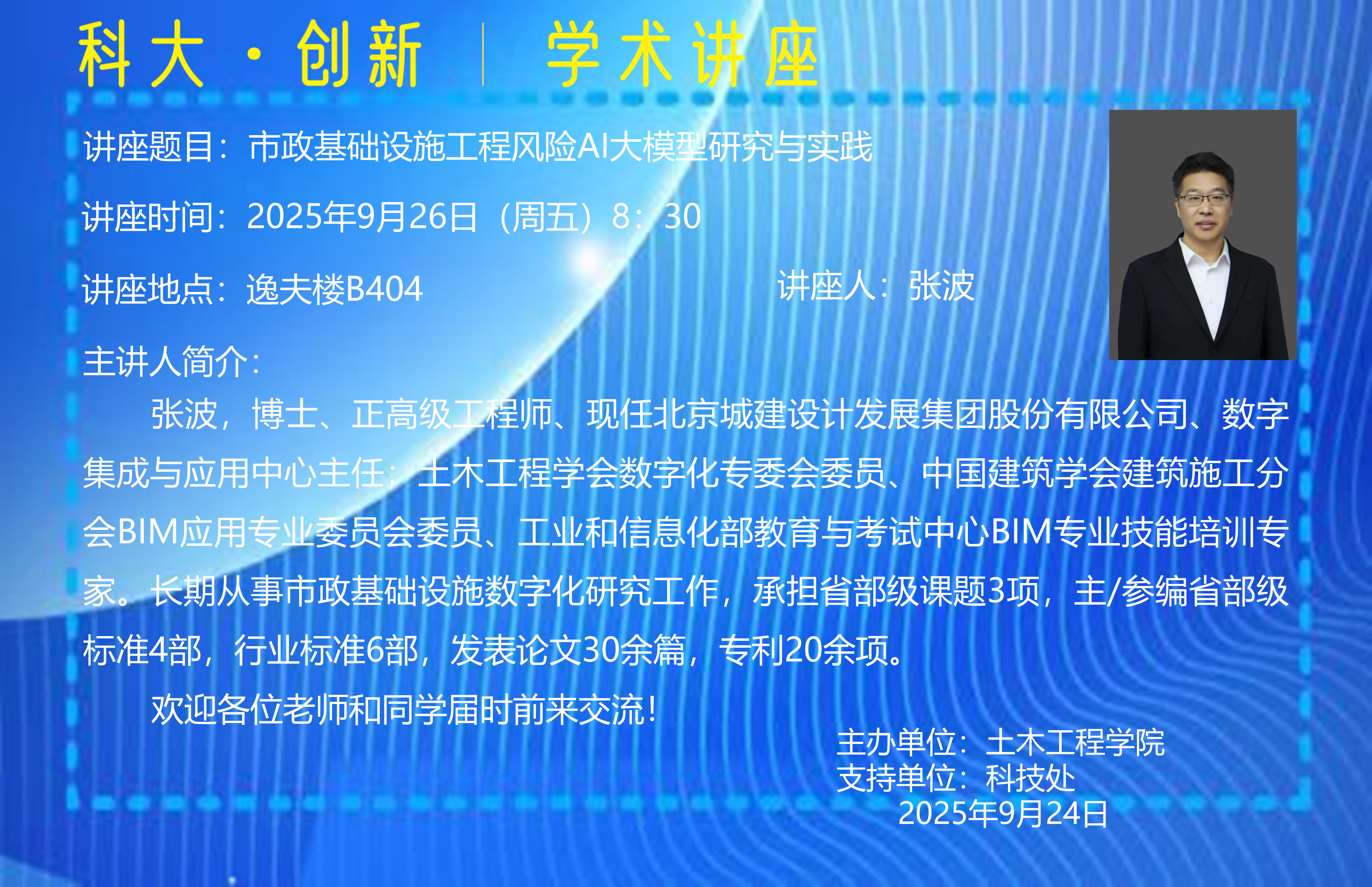 讲座题目:市政基础设施工程风险AI大模型研究与实践