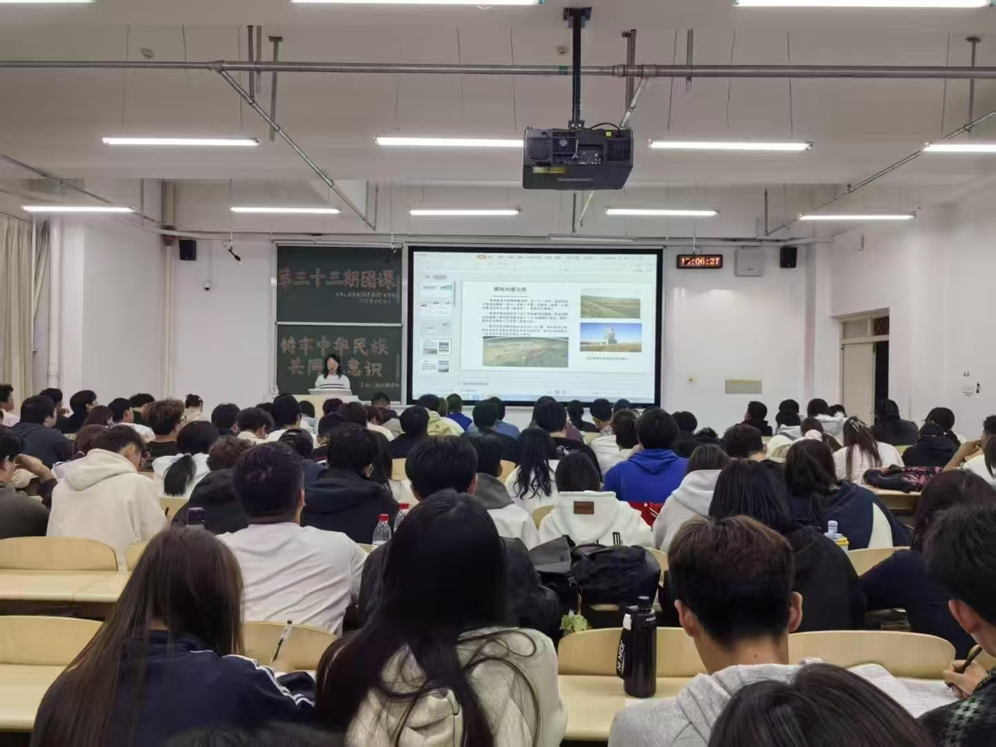 课堂上,张利敏老师围绕“内蒙古黄河非遗文化的地域特性”“多民族共同开发建设的河套地区”等内容,层层展开、深入讲解,引导团员青年深入思考民族团结的现实意义与发展路径。她强调,要在一体多元分布中扎根共生,在文化交流中互鉴融通,真正将中华民族共同体意识内化于心、外化于行